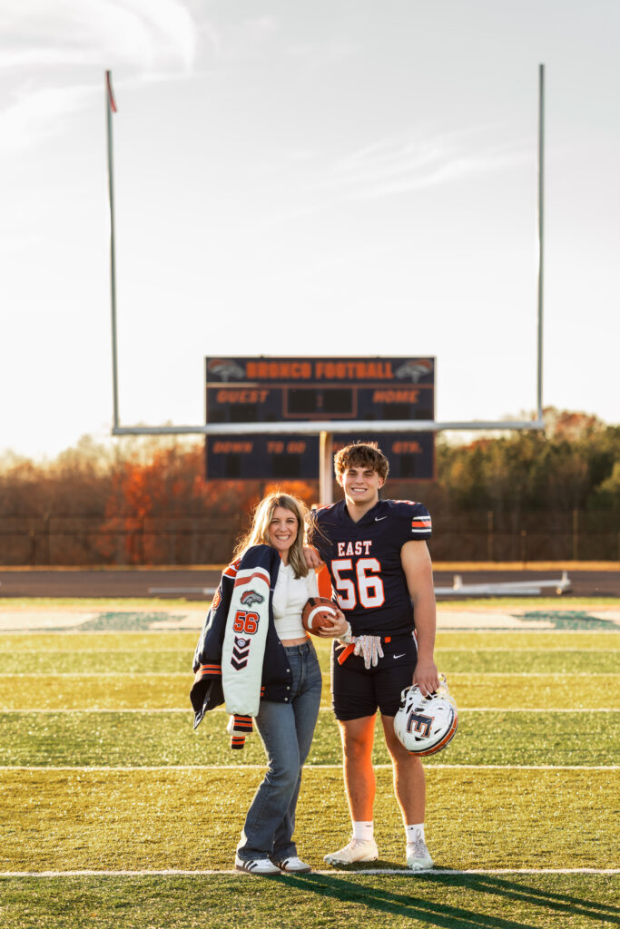 For context, these photos were taken during a senior football mom-and-son shoot for East Forsyth High School, directed by photographer Amy Jo Wright of Focal Point Sports, with the entire senior football program and their moms participating.